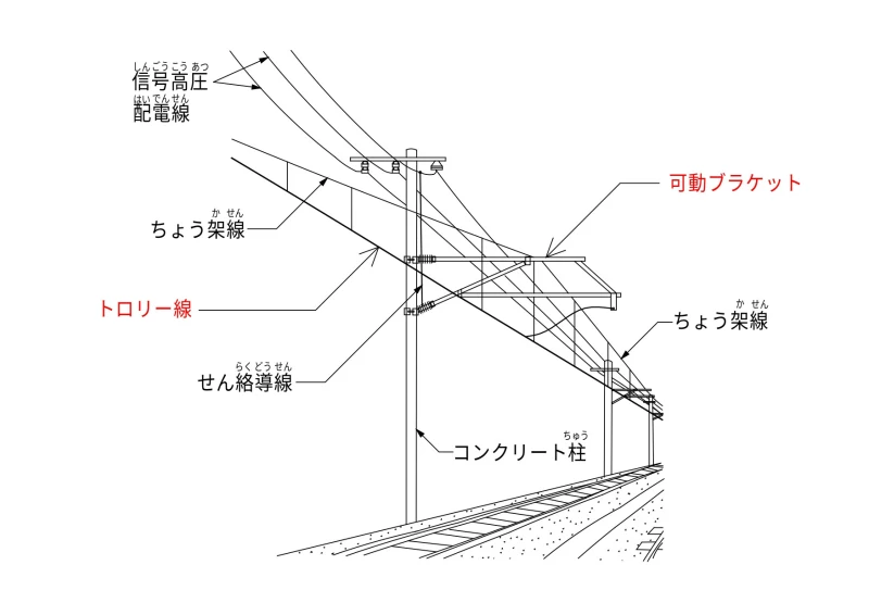 トロリ線は、電車に電力を供給するための架空電線で、パンタグラフが接触して電流を取り込む部分です。